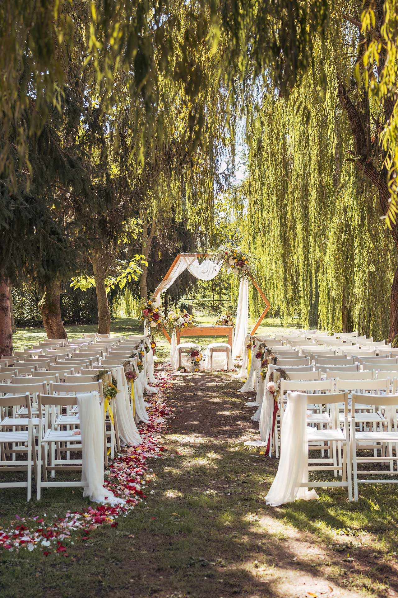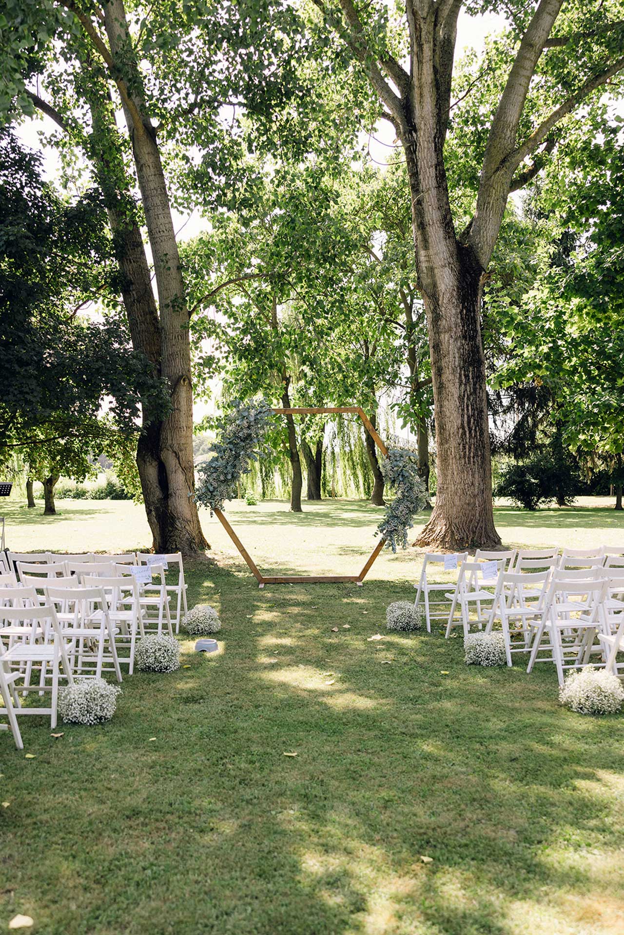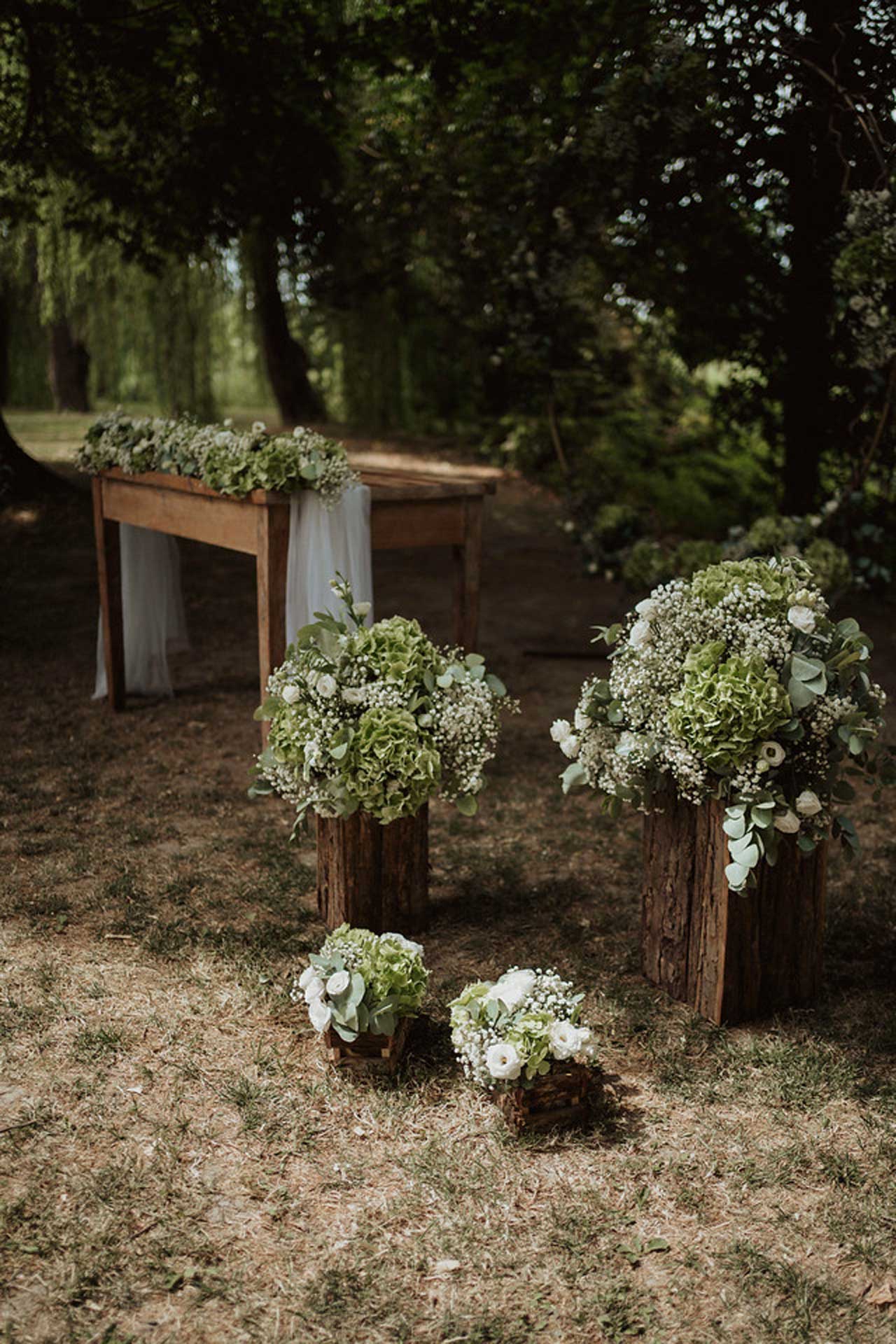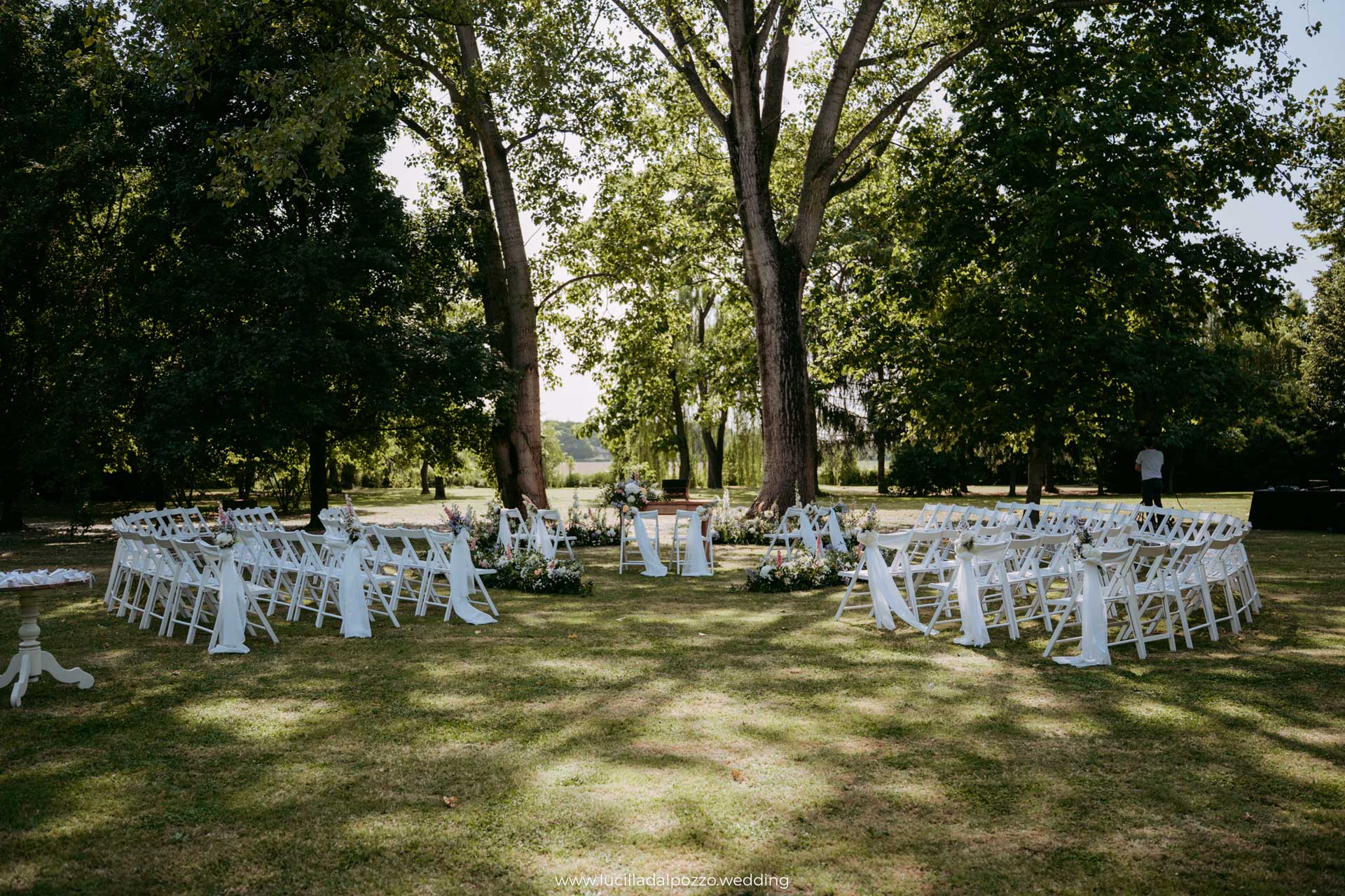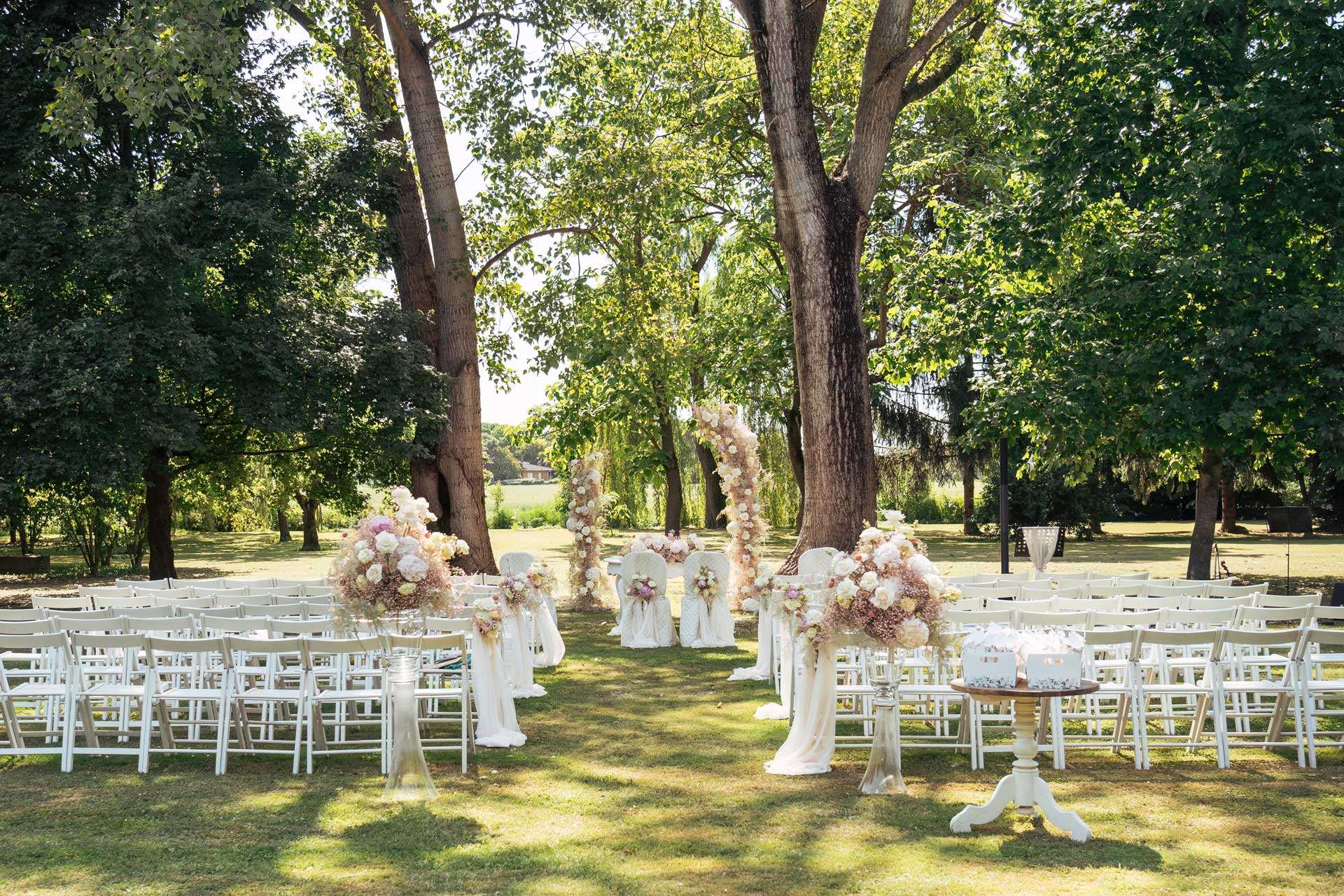 Un allestimento personalizzato nel verde, all’ombra dei secolari salici piangenti, o nel rigoglioso giardino dei tigli vi consentirà di celebrare la cerimonia dei vostri sogni.